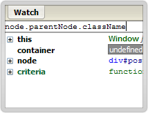 注意到上面的Properties没有?这个很有用,可以让你看到元素具有的方法与属性,比查API手册要方便得多(要注意某些方法和属性在IE、FireFox等其他浏览器下面的支持情况)。