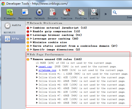 它甚至可以分析出页面上样式表中有哪些CSS是没有被使用的: