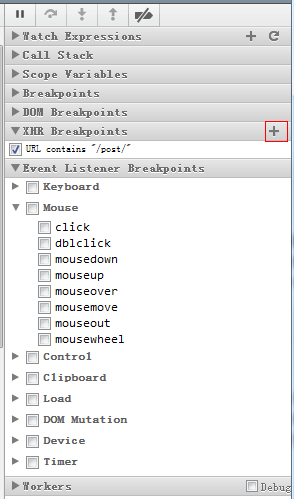 你甚至还可以为某一XHR请求或者某一事件设置断点: