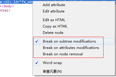 你还可以对某个元素进行监听,在JS对元素的属性或者HTML进行修改的时候,直接触发断点,跳转到对改元素进行修改的JS代码处: