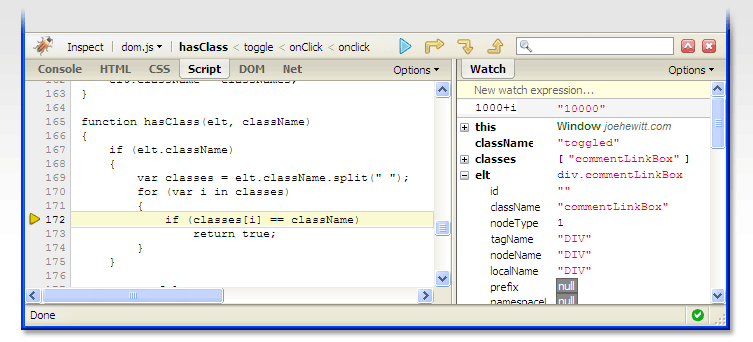 Firebug includes a powerful JavaScript debugger that lets you pause execution at any time and see what each variable looked like at that moment, If your code is a little sluggish, use the JavaScript profiler to measure performance and find bottlenecks fast,