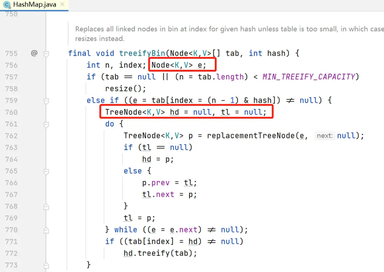 大家看它的条件,你看如果这个条件满足情况,它就调这个方法 treeifyBin,