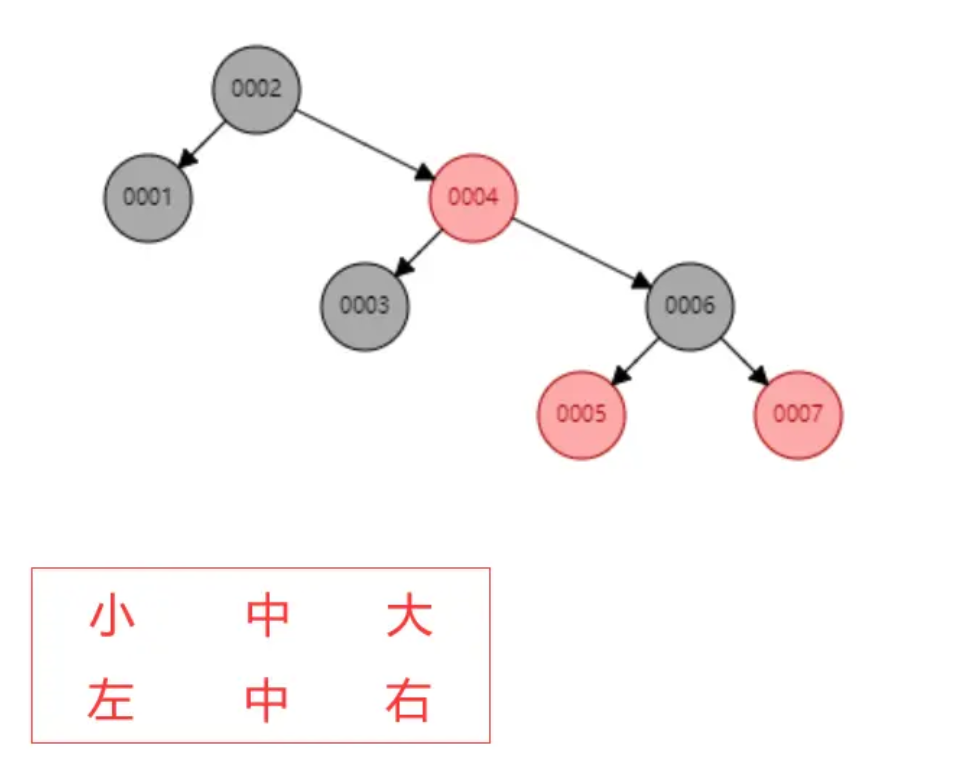 来我们来看004啊,你看004也是一样,比004小的,都在左边,