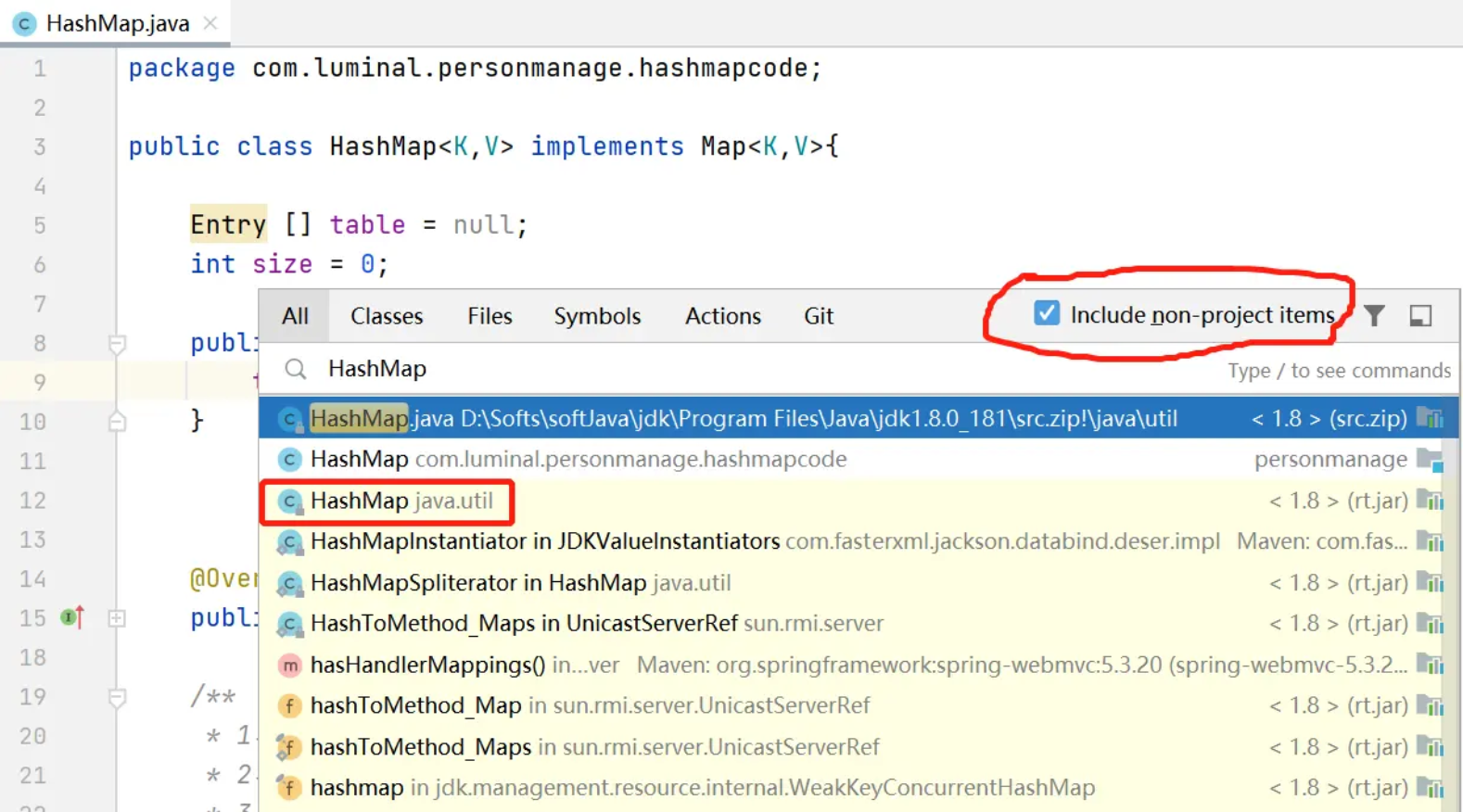咱们看这个HashMap的一个源码,Shift+Shift,搜索HashMap,