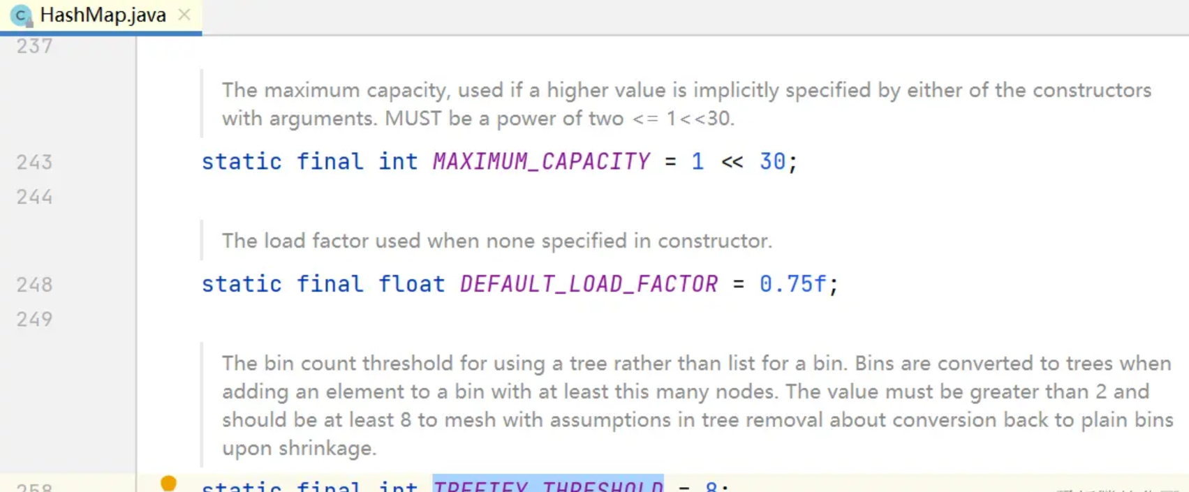 一上来它默认还是先用链表, 只有当我们的这个链表达到一个阈值的情况下,