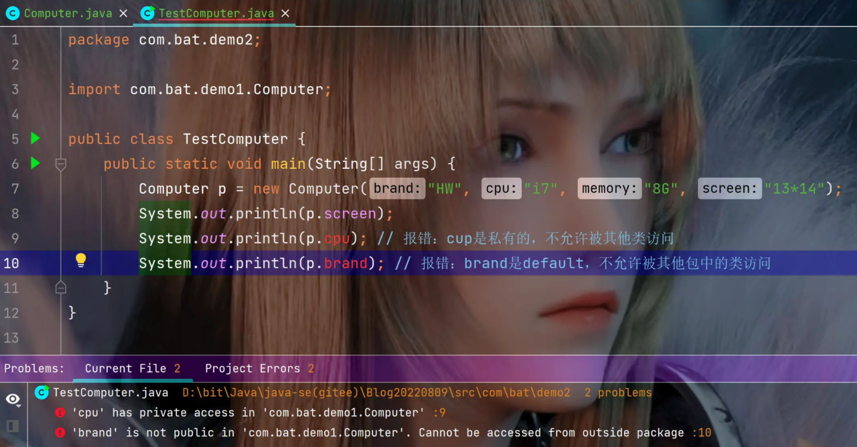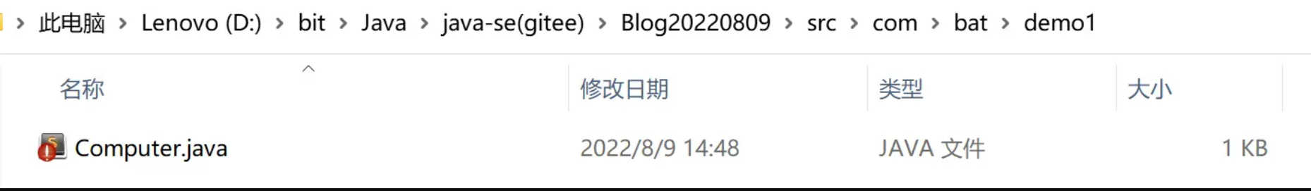 Computer类位于com.bat.demo1包中,TestComputer位置com.bat.demo2包中