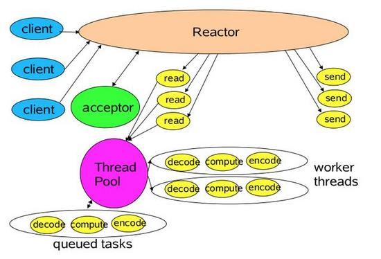 涉及到事件分发器的两种模式称为:Reactor和Proactor。 Reactor模式是基于同步I/O的,而Proactor模式是和异步I/O相关的。在Reactor模式中,事件分发器等待某个事件或者可应用或个操作的状态发生(比如文件描述符可读写,或者是socket可读写),事件分发器就把这个事件传给事先注册的事件处理函数或者回调函数,由后者来做实际的读写操作。