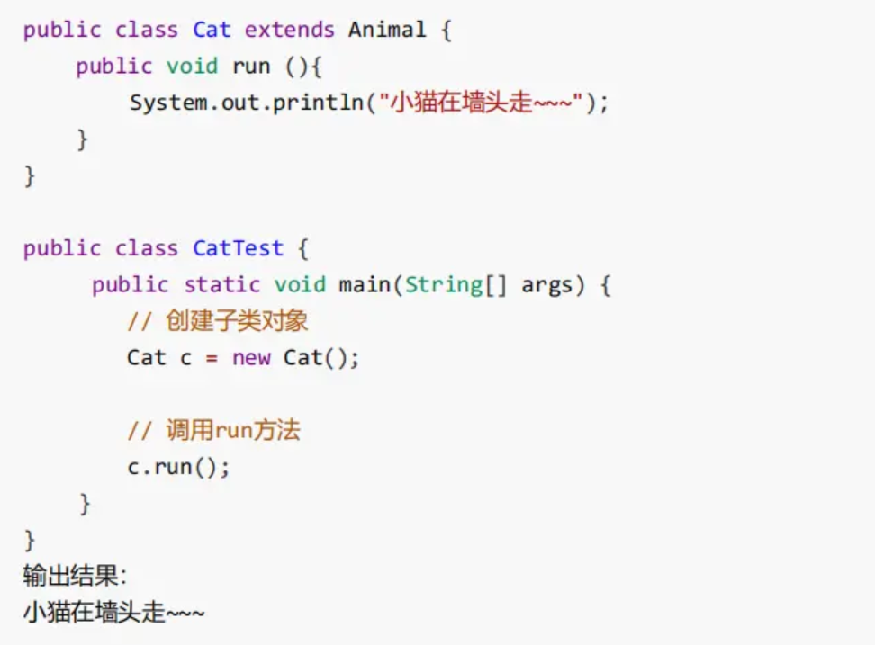 此时的方法重写,是子类对父类抽象方法的完成实现,我们将这种方法重写的操作,也叫做 实现方