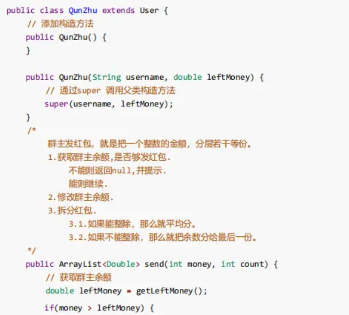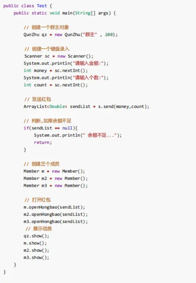 请根据描述,完成案例中所有类的定义以及指定类之间的继承关系,并完成发红包的操作。