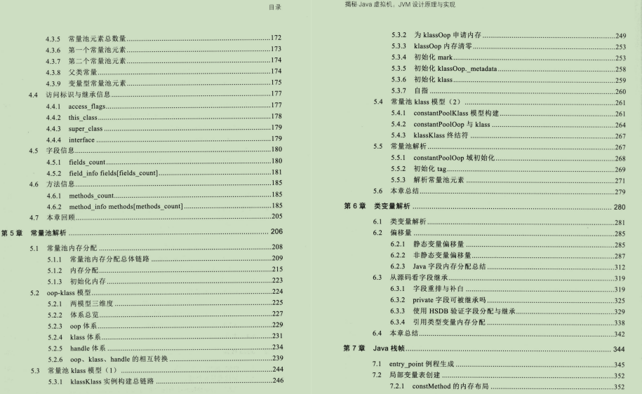 本书从源码角度解读HotSpot的内部实现机制,本版本主要包含三大部分一JVM数据结 构设计与实现、执行引擎机制及内存分配模型。数据结构部分包括Java字节码文件格式、常量池解析、字段解析、方法解析。每一部分都给出详细的源码实现分析,例如字段解析一章,从源码层面详细分析了Java字段重排、字段继承等关键机制。再如方法解析一章,给出了Java多态特性在源码层面的实现方式。本书通过直接对源代码的分析,从根本上梳理和澄清Java领域中的关键概念和机制。