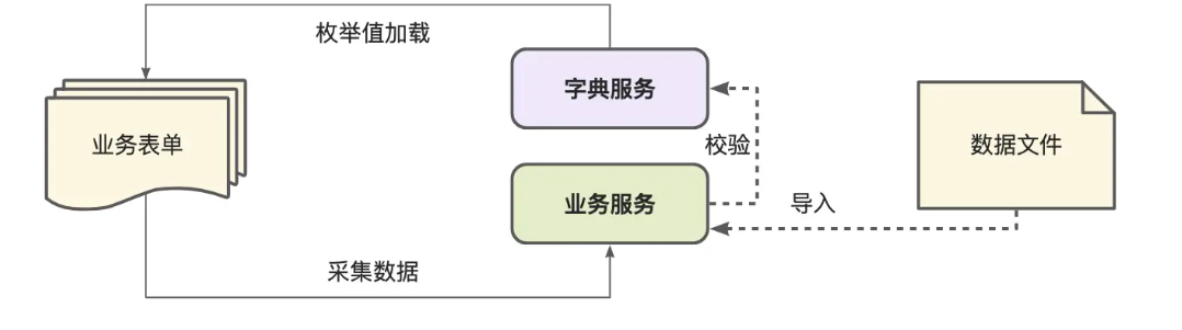 在字典服务中,通常管理公共的常量与数据枚举值的维护;常规情况下,在业务表单加载的时候,从字典服务中读取各维度枚举值,在表单提交的时候,校验相关枚举字段,以此提高内容的质量;