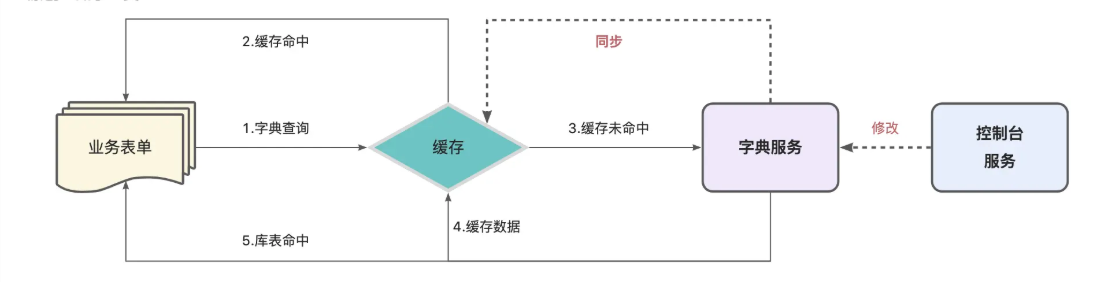 字典数据的查询通常采用Cache-Aside缓存模式,即查询优先访问缓存数据,命中则返回数据;否则访问库表数据,获取数据后返回页面并同步缓存中;在控制中心做内容修改后也需要再次同步缓存;