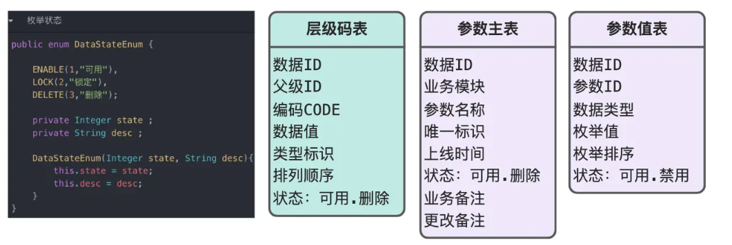 对于字典数据的维护,通常使用两种手段:枚举类管理,码表存储,参数表存储;如何选择对应的方式,更多是取决于数据的属性: