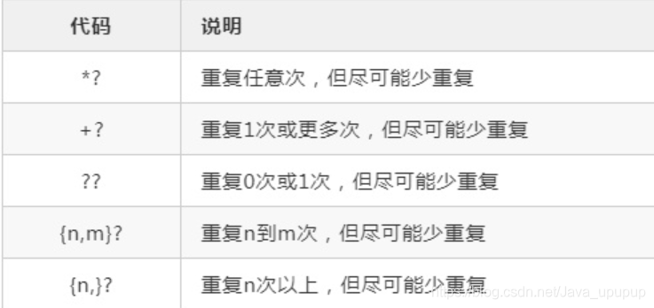 懒惰匹配:当正则表达式中包含能接受重复的限定符时,通常的行为是(在使整个表达式能得到匹配的前提下)匹配尽可能少的字符,这匹配方式叫做懒惰匹配。