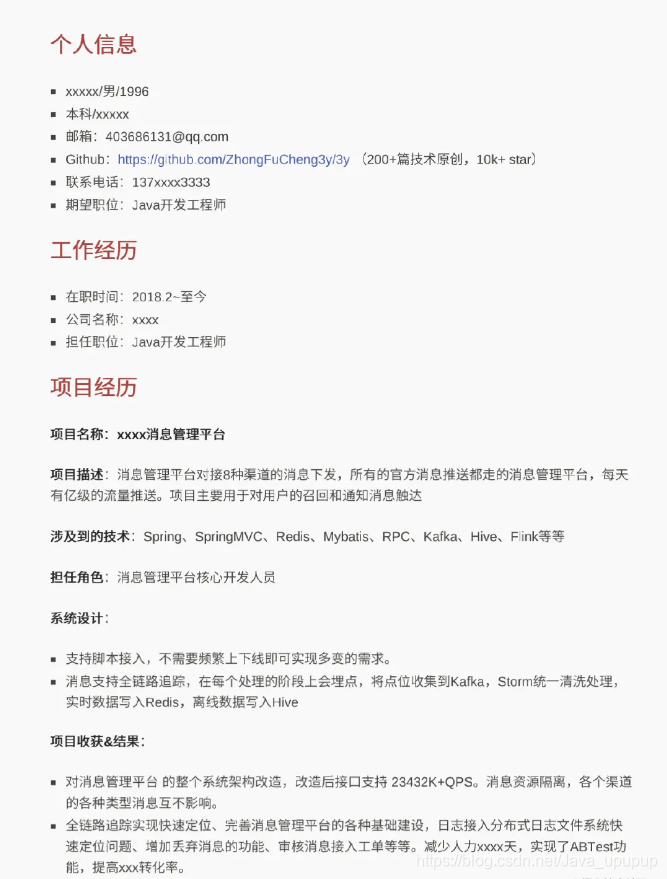 在上一次春招,和大佬聊过,有幸得知了一些可爱的简历。