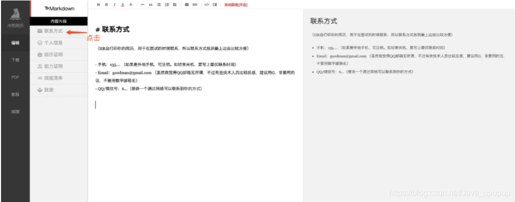 在GitHub里边有个在线的MarkDown简历书写工具 :