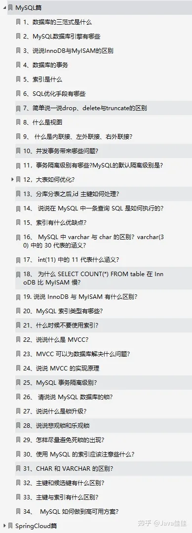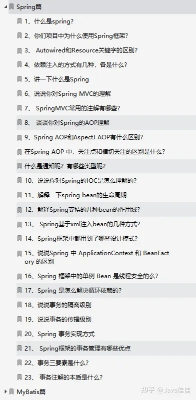 这份面试总结比较多,就不一一的详细介绍了,粗略的将主要内容展示一下,其中含有20+的知识点: