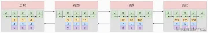新分配的数据页编号可能并不是连续的。它们只是通过维护者上一个页和下一个页的编号而建立了 链表 关系