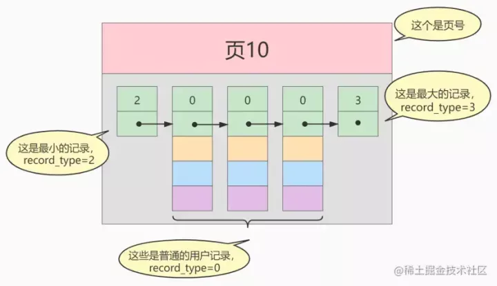 record_type:记录头信息的一项属性,表示记录的类型, 0 表示普通记录、 2 表示最小记录、 3 表示最大记录、 1 暂时还没用过,下面讲。