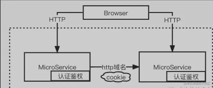 这种方案希望保持单体架构时的调用方式,微服务间调用接口复用了提供给WEB页面的接口。 为了解决登录鉴权问题,微服务间调用时,会将WEB页面的cookie透传至其他服务,这样鉴权逻辑可以保持不动。 很显然,该方案虽然看上去能很好work,但它是一种反模式设计,完全违背了微服务的初衷,微服务一定是无状态的!