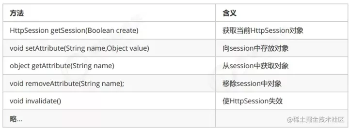 基于 Session 的认证机制由 Servlet 规范定制,Servlet 容器已实现,用户通过 HttpSession 的操作方法即可实现,如下是 HttpSession 相关的操作API。
