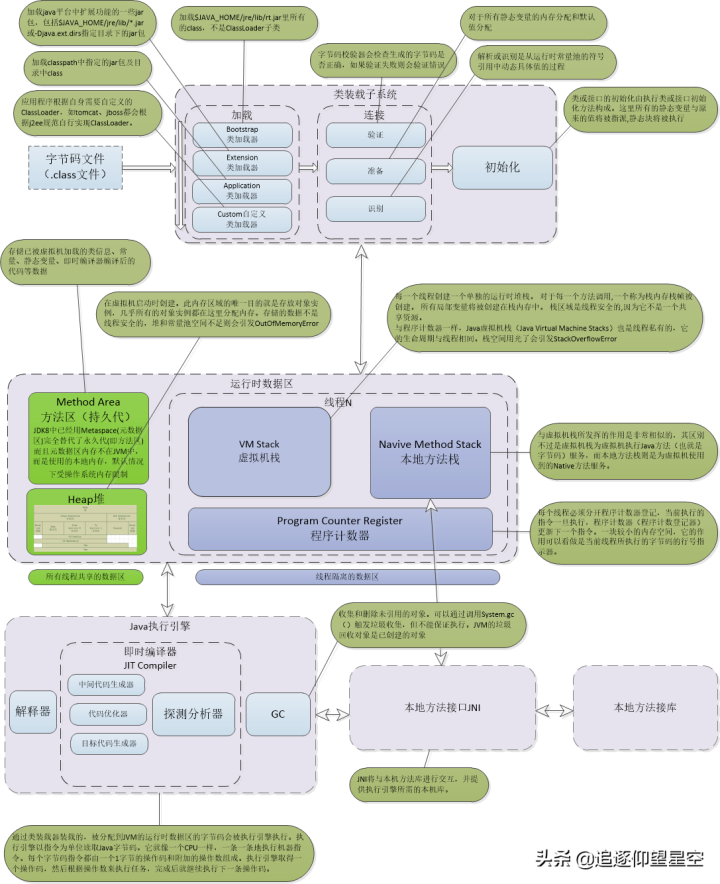 根据虚拟机规范,JVM的内存分为 堆、虚拟机栈、本地方法栈、程序计数器、本地方法栈5部分