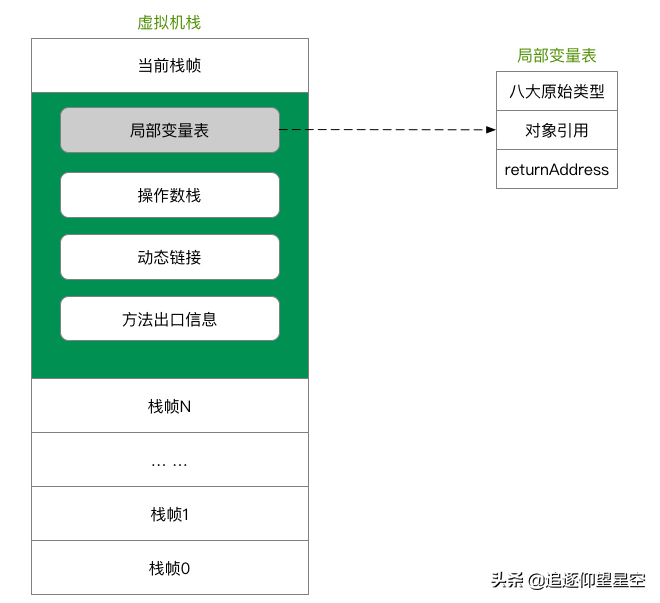 局部变量表随着栈帧的创建而创建,它的大小在编译时确定,创建时只需分配事先规定的大小即可。在方法运行过程中,局部变量表的大小不会发生改变