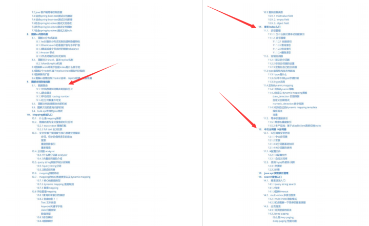 注:限于文章篇幅原因,我就仅展示部分内容及目录截图。有需要的朋友可以看看这里—传送门——【elasticsearch实战手册】