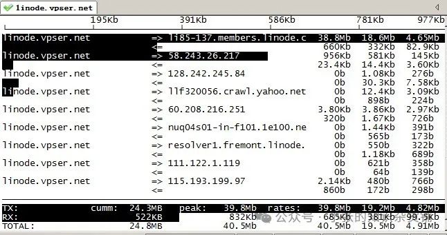 -n使host信息默认直接都显示IP,如:# iftop -n