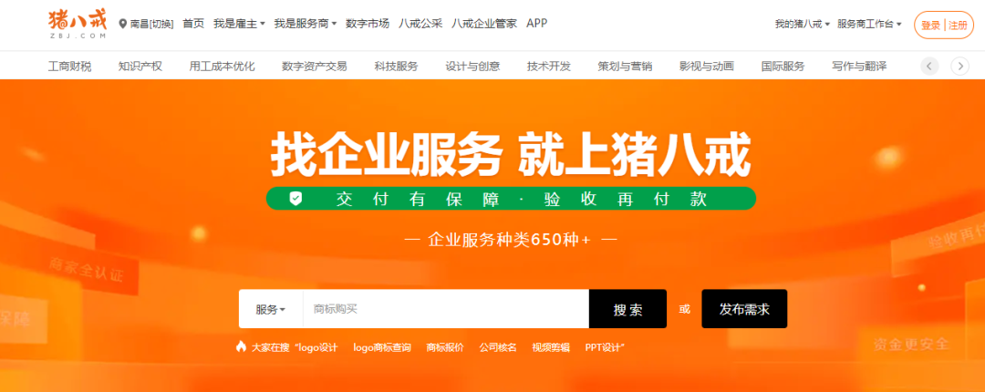 猪八戒网是一个企业服务外包平台,服务品类涵盖创意设计、网站建设、网络营销、文案策划、生活服务等多种行业。