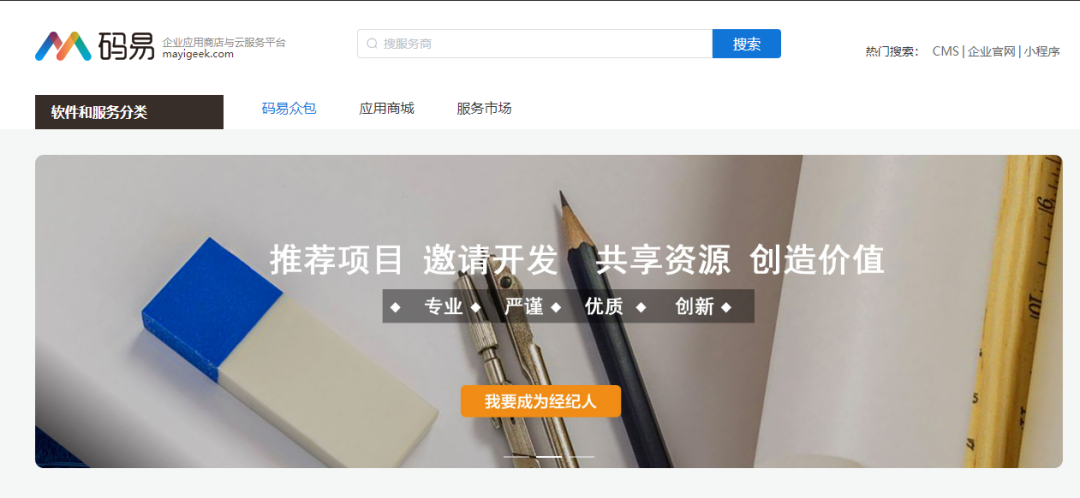 码易是一个互联网软件服务外包平台,集软件商城、企业应用、电商软件、CRM软件、商务服务平台于一体,旨在为企业提供一个面向企业的应用软件和服务交易平台。通过应用商城、服务市场、码易众包、码易课堂等多维度业务线,满足企业应用软件和服务采购需求。