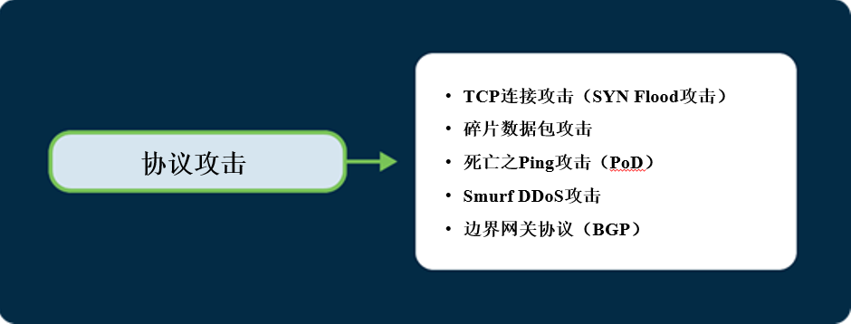 此类攻击利用网络协议或服务中的漏洞破坏目标系统。通过关注弱协议实现,恶意攻击者可降低目标系统的性能或导致其发生故障。协议DDoS攻击通常针对的是开放系统互连(OSI)模型的第3层(网络层)和第4层(传输层)。
