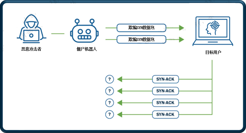 与DoS攻击相比,DDoS攻击的主要优势在于生成的流量更多,在更大程度上占用目标系统的资源。还可以通过IP欺骗等各种技术实施DDoS攻击,即恶意攻击者通过控制源IP地址和僵尸网络掩盖攻击的来源,使其难以追踪。