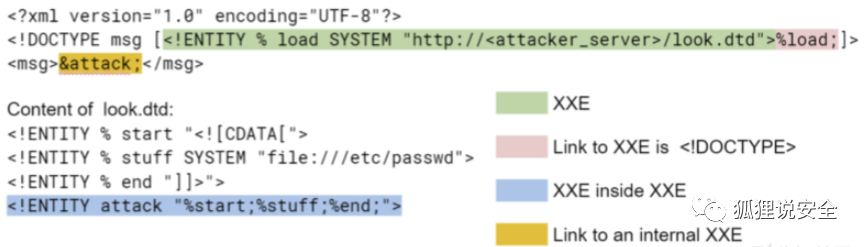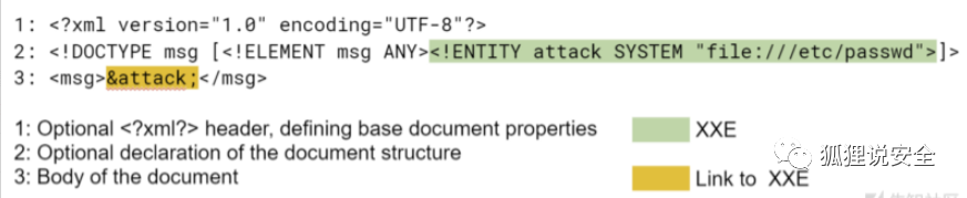 这里的文本$attack;指的是前面注册的实体的链接。链接中指定的文件内容将其替换为文档正文中的内容。上述文档分为三个重要部分: