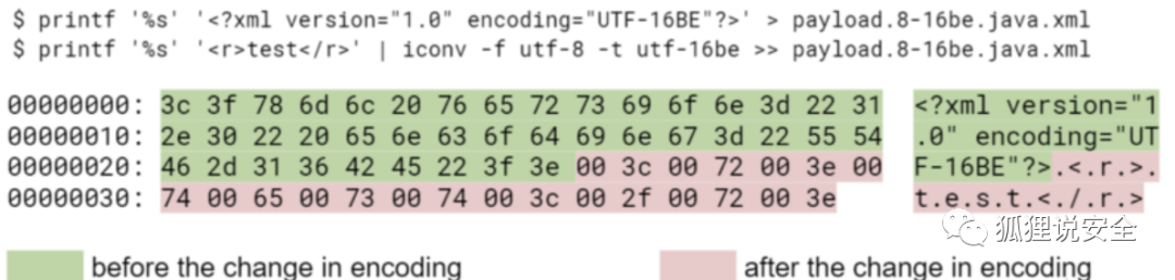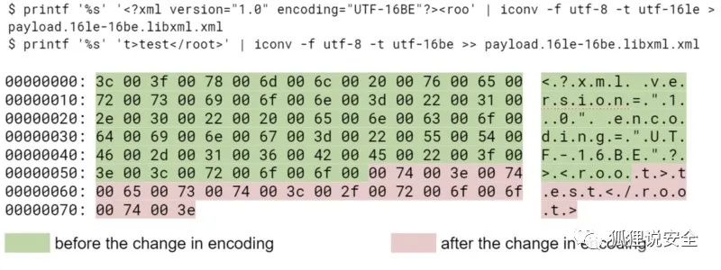 外来编码也可用于绕过成熟的WAF,因为它们并不总是能够处理上面列出的所有编码。例如,libxml2解析器只支持一种类型的utf-32 - utf-32BE,特别是不支持BOM。