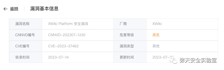 XWiki Platform存在安全漏洞,该漏洞源于文档“SkinsCode.XWikiSkinsSheet”不当转义,从而导致远程代码执行。XWiki 平台是一个通用的 wiki 平台,为构建在其之上的应用程序提供运行时服务。 文档“SkinsCode.XWikiSkinsSheet”中的不当转义会导致从该文档的视图权限到编程权限的注入向量,或者换句话说,可以执行任意脚本宏,包括允许远程代码执行(包括无限制)的 Groovy 和 Python 宏对所有 wiki 内容的读写访问权限。 该攻击通过打开一个不存在的页面来进行,该页面的名称经过精心设计,包含危险的有效负载。 可以检查现有安装是否容易受到攻击。
