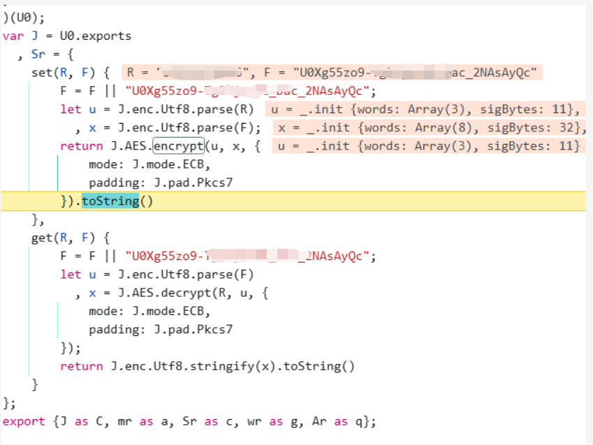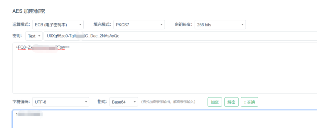 通过断点逆向找出加密方式及密钥 AES-ECB加密 U0Xg55zo9-TglUjxvBG_Dac_2NAsAyQc 尝试加密手机号判断密钥是否正确可用