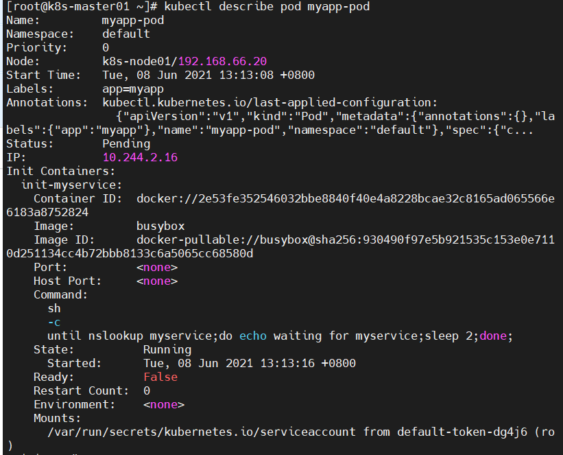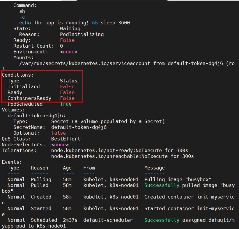 NAME READY STATUS RESTARTS AGEmyapp-pod 0/1 Init:0/2 0 20s