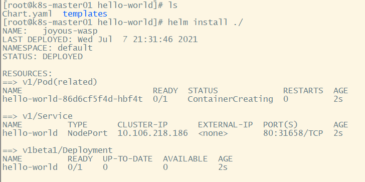 [root@k8s-master01 hello-world]# helm installError: This command needs 1 argument: chart nam[root@k8s-master01 hello-world]# helm install ./Error: no Chart.yaml exists in directory "/root/hello-world"