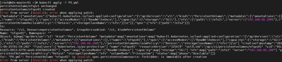 原因分析:pv的name字段重复。