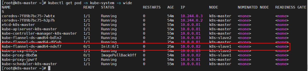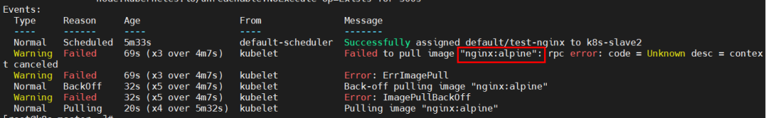 原因分析:k8s-slave1节点拉取镜像失败。