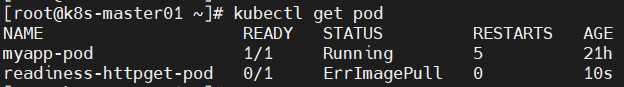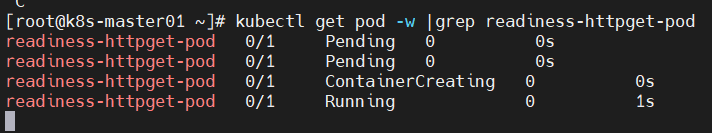 readiness-httpget-pod 0/1 Pending 0 0sreadiness-httpget-pod 0/1 Pending 0 0sreadiness-httpget-pod 0/1 ContainerCreating 0 0sreadiness-httpget-pod 0/1 Error 0 2sreadiness-httpget-pod 0/1 Error 1 3sreadiness-httpget-pod 0/1 CrashLoopBackOff 1 4sreadiness-httpget-pod 0/1 Error 2 15sreadiness-httpget-pod 0/1 CrashLoopBackOff 2 26sreadiness-httpget-pod 0/1 Error 3 37sreadiness-httpget-pod 0/1 CrashLoopBackOff 3 52sreadiness-httpget-pod 0/1 Error 4 82s