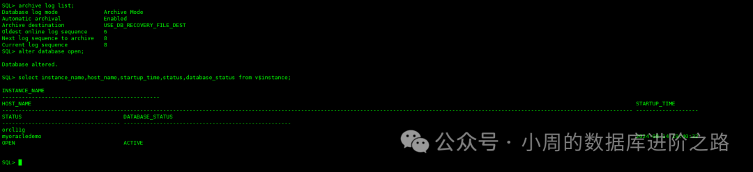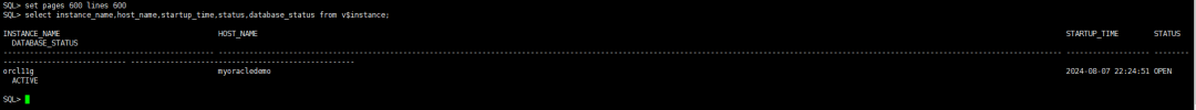 SQL> select instance_name,host_name,startup_time,status,database_status from v$instance;#查看实例状态