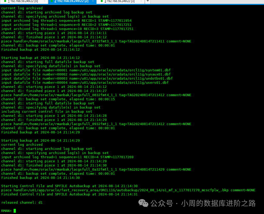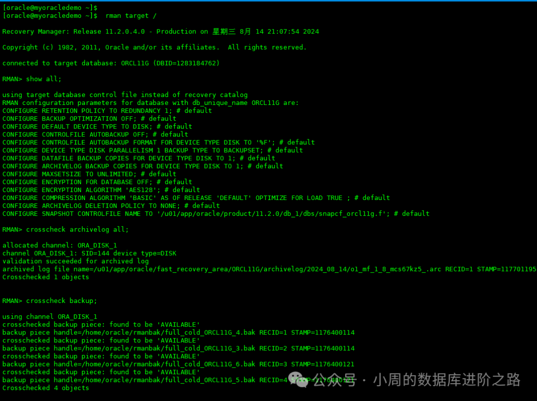 0 1 * * * /home/oracle/rmanbak/rmanbak.sh >rmanbak.log 2>&1