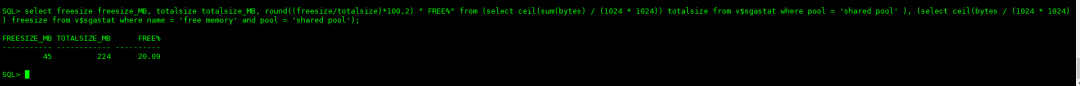 SQL>select f.tablespace_name,a.total,f.free,round((f.free/a.total)*100) "% Free" -