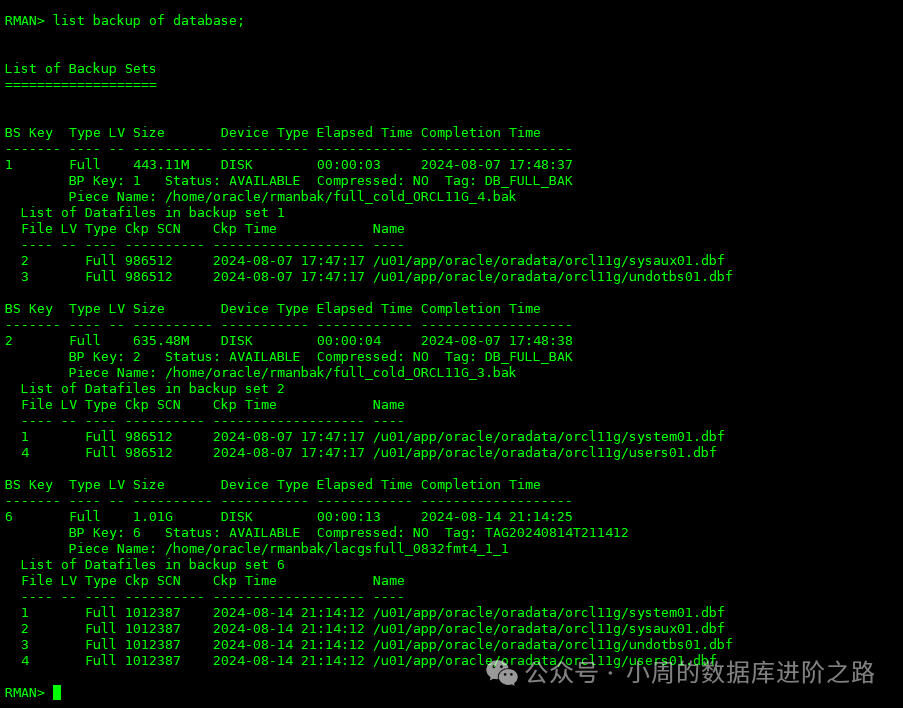 backup as compressed backupset database include current controlfile format '/home/oracle/rmanbak/full_%U.bak'; -