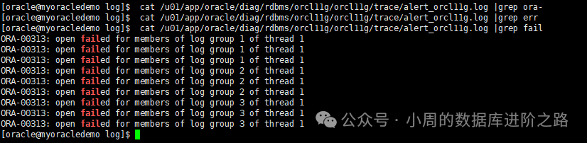 [oracle@myoracledemo log]$ cat /u01/app/oracle/diag/rdbms/orcl11g/orcl11g/trace/alert_orcl11g.log |grep fail