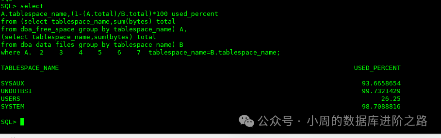 WHERE a.tablespace_name = f.tablespace_name(+) -