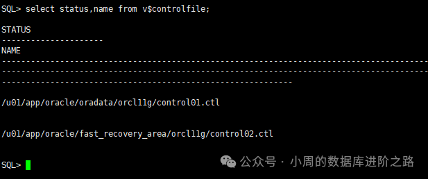 说明:“STATUS”应该为空。状态为空表示控制文件状态正常。